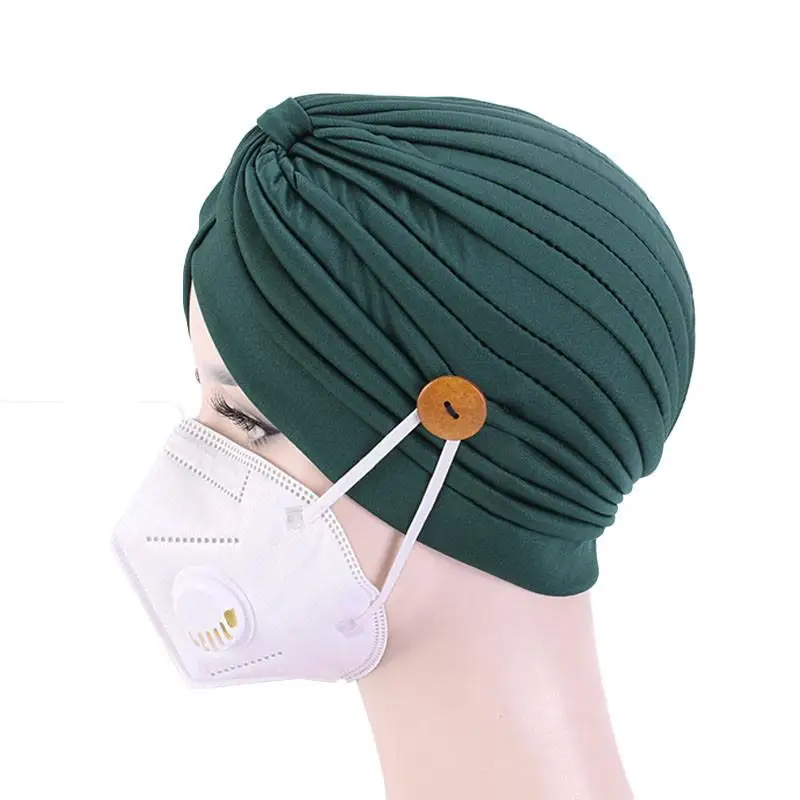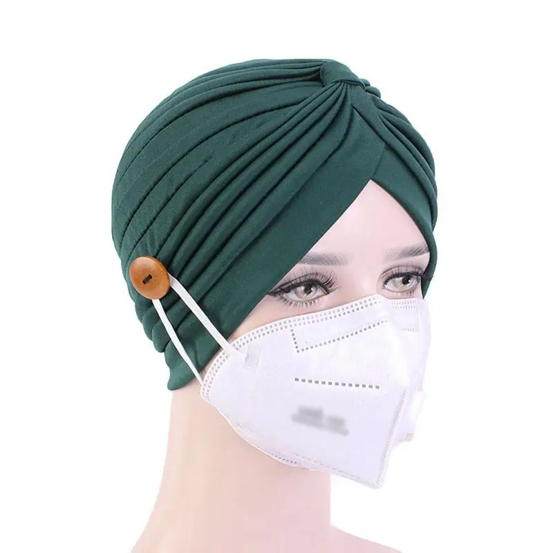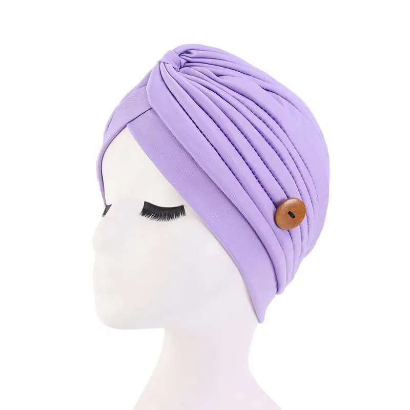 2021 Muslim Cotton Turban Hat With Button Hijab Bonner Head Wrap For Women Indian African Twist Hijab Caps Turbante Mujer