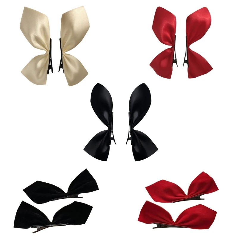 652F Girls Hair Clip Lovely Barrettes Duckbill Bowknot Shape Hairpin Satin/ Velvet Hair Clip for Teenagers Toddler Wear