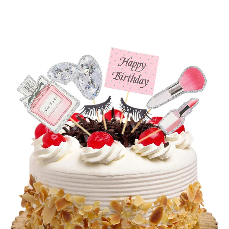 Cake Toppers Perfume Lipstick Makeup brush DIY Cupcake Topper Women Cake Flags Kids Girl Happy Birthday Bride Party Baking Decor