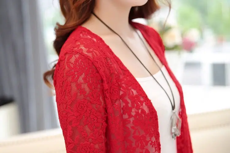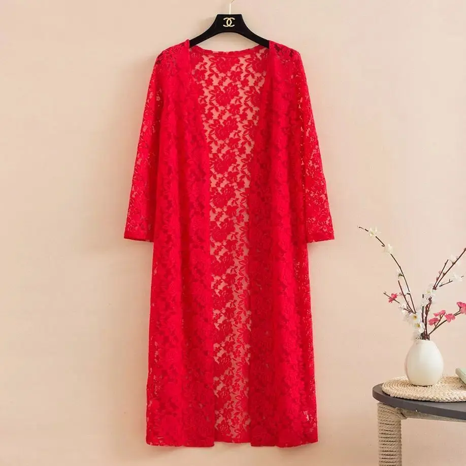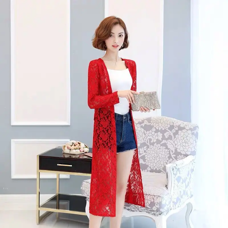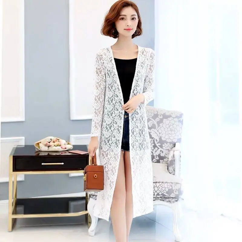 new Summer women's Cardigan long sleeved lace sun protection suit mid length shawl air-conditioned jacket thin outerwear shirts