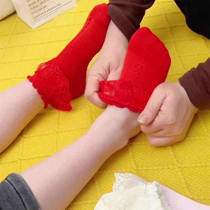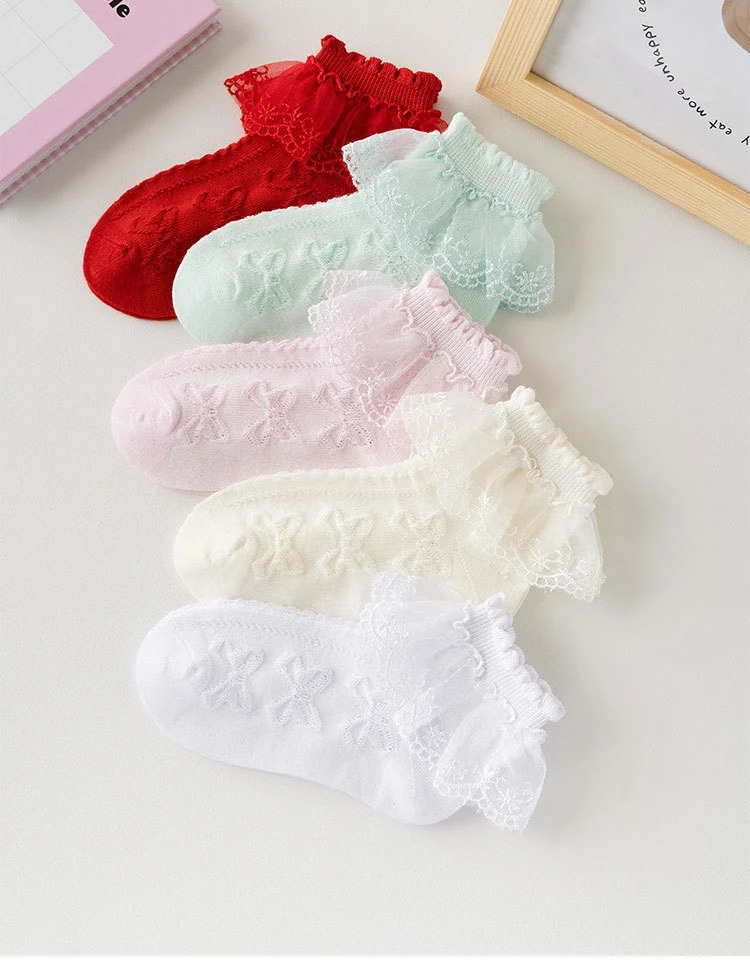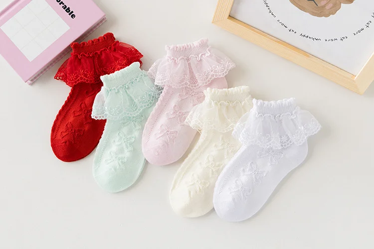 Summer Children's Socks For Girls Mesh Thin Ruffle Lace Princess Kids Elegant Socks Fashion Toddler Baby Dance Sock 1-12Years