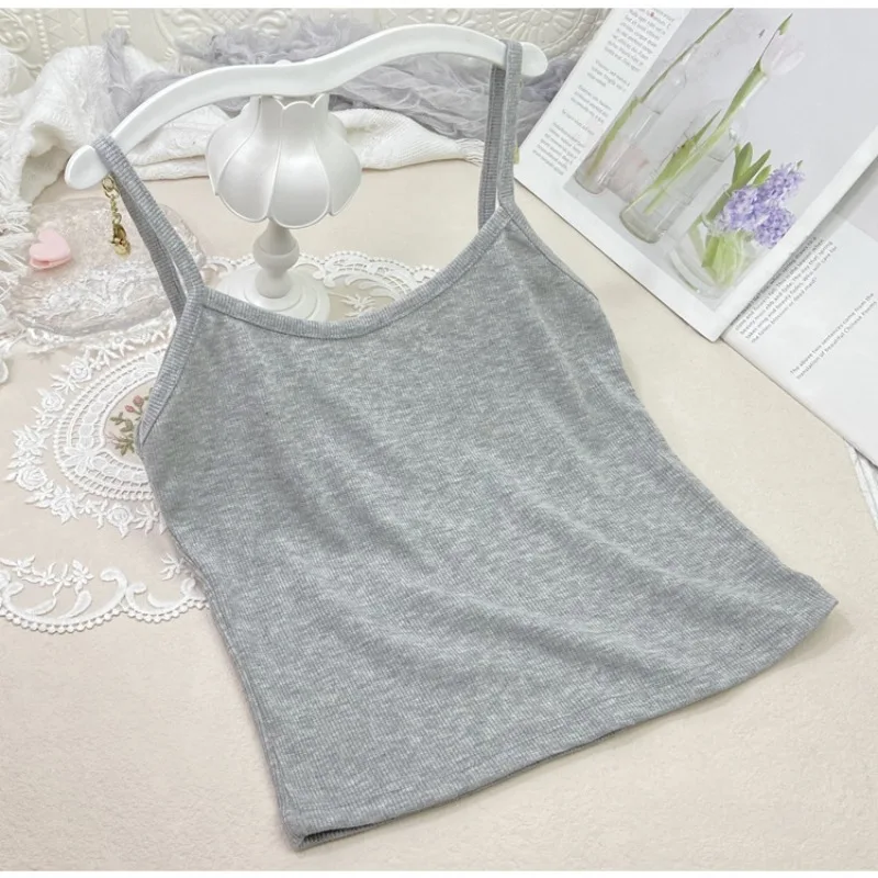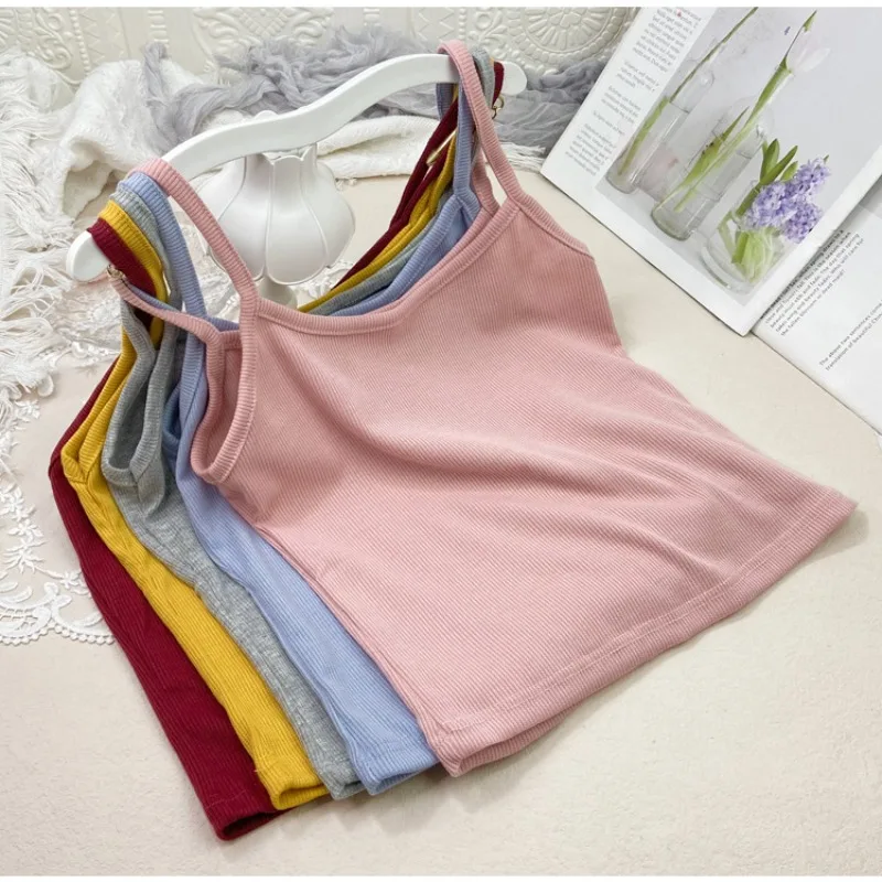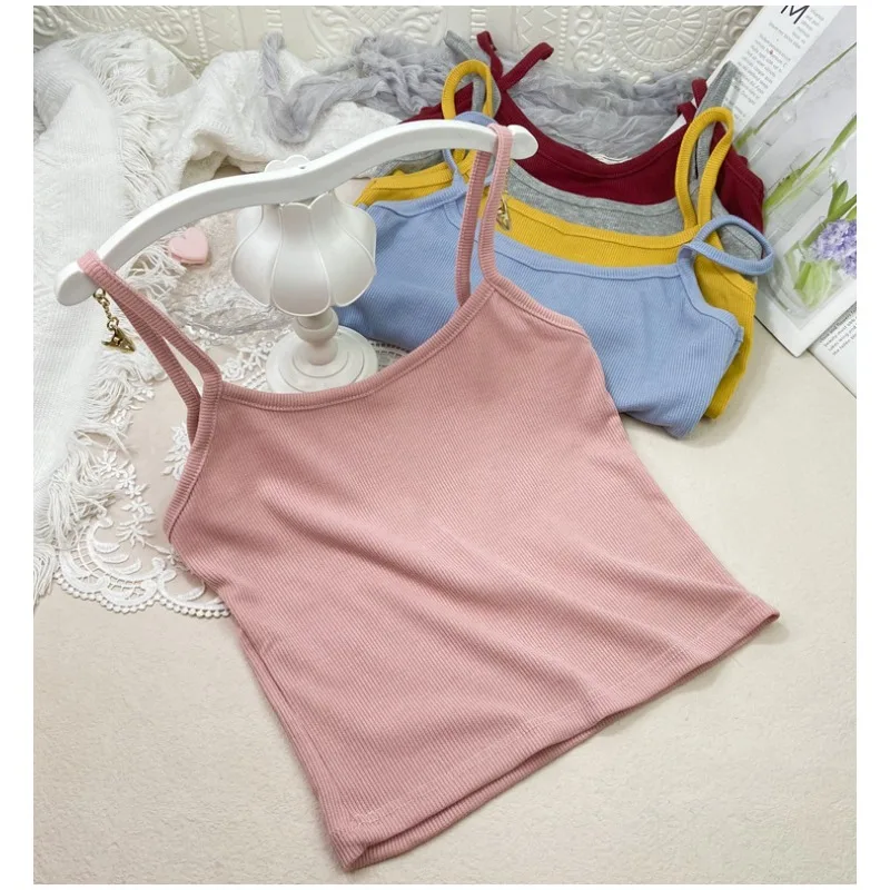Summer New Solid Color Small Camisole for Girls and Students, with A Slimming Look and A Versatile Thread Vest. Short Base Shirt
