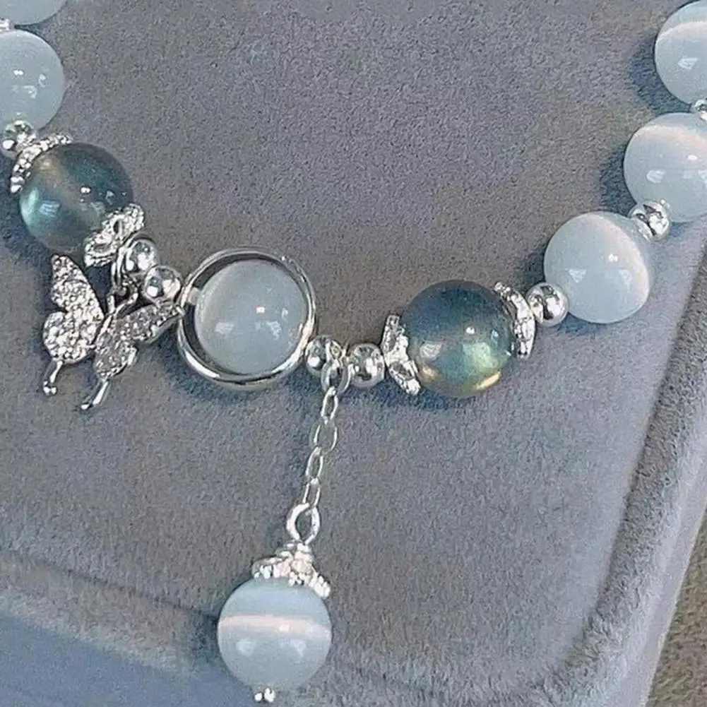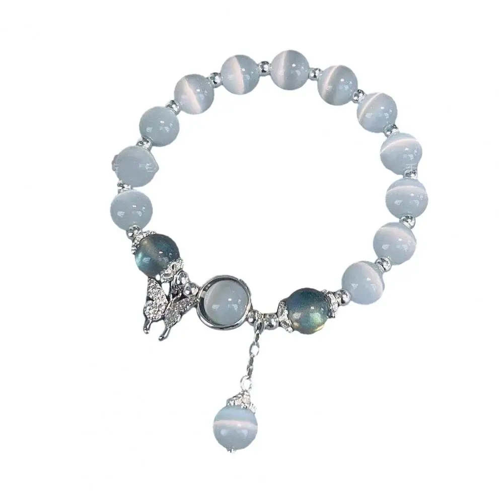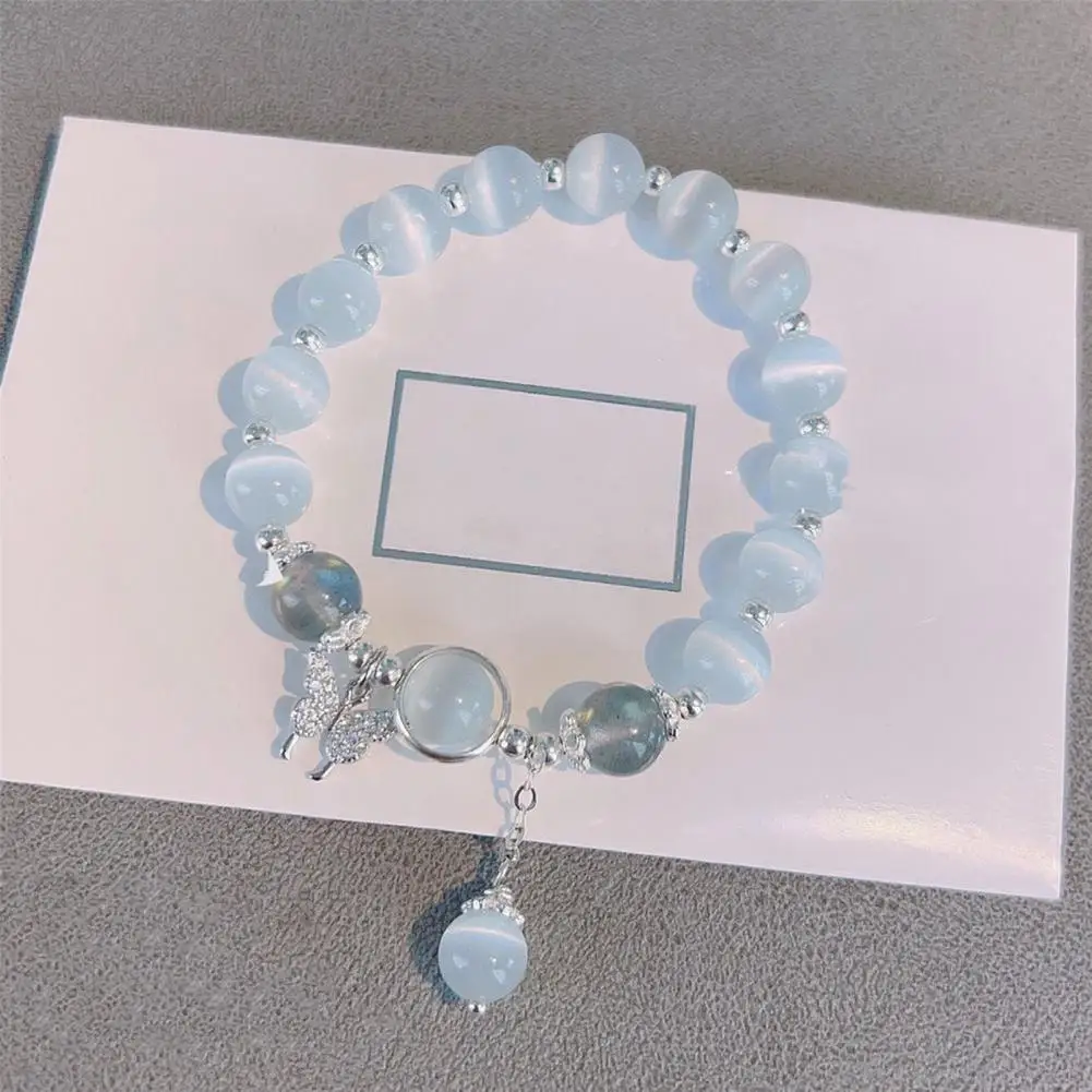 Women Bracelet Imitation Opal Butterfly Pendant Smooth Elastic Band Lady Birthday Gift Exquisite Wrist Bracelet Jewelry